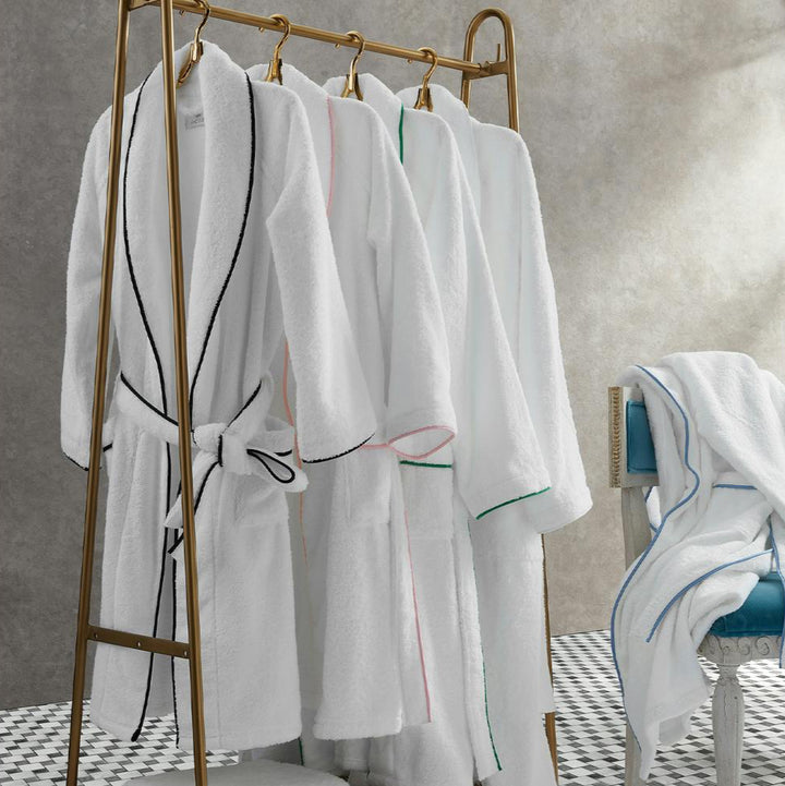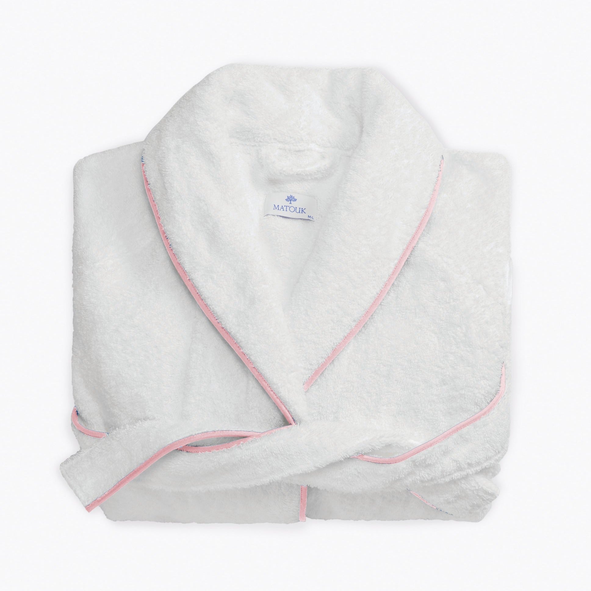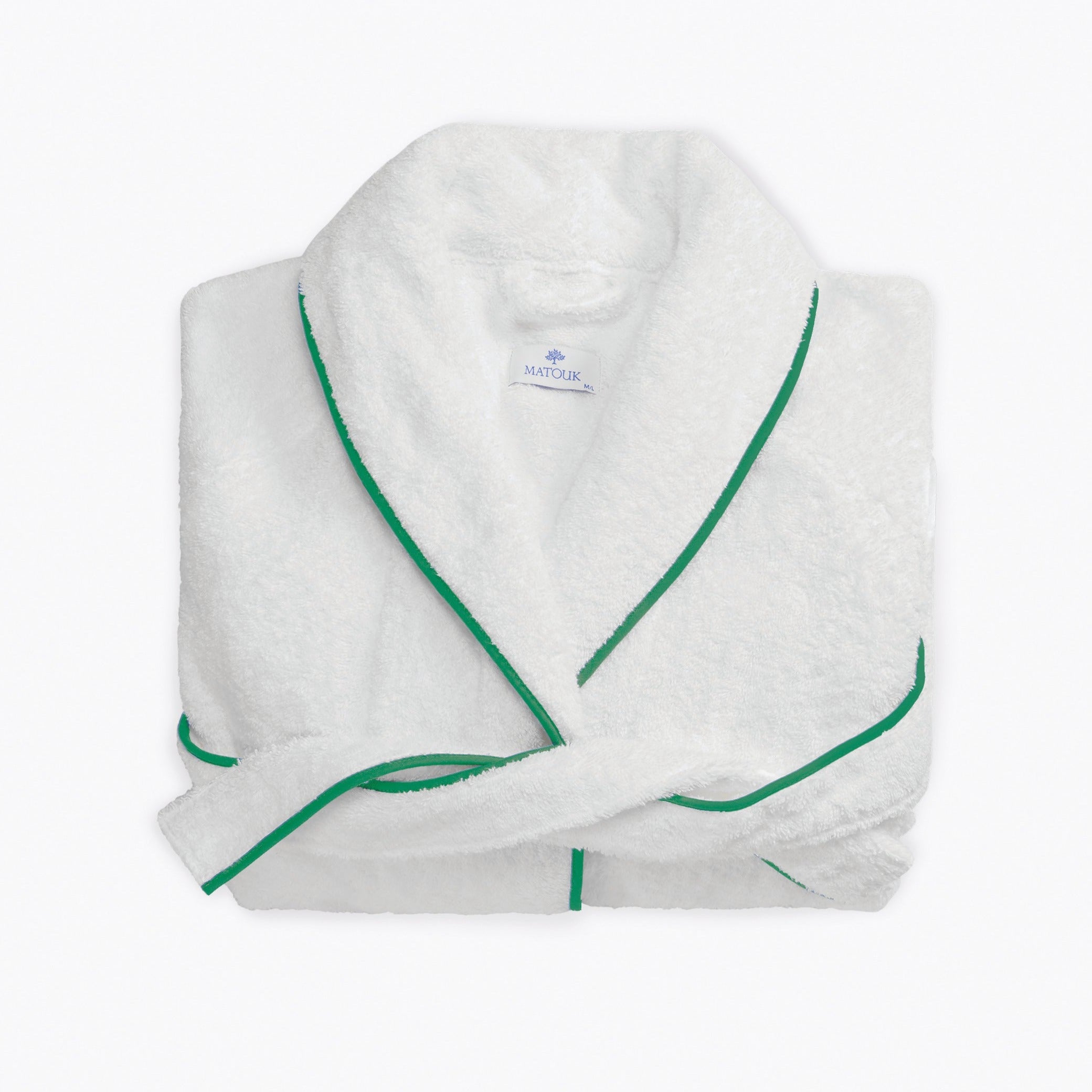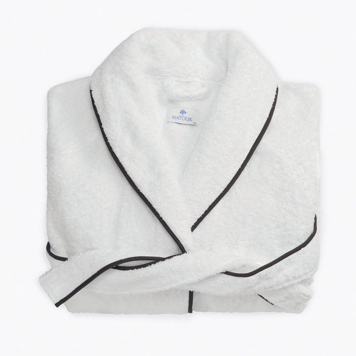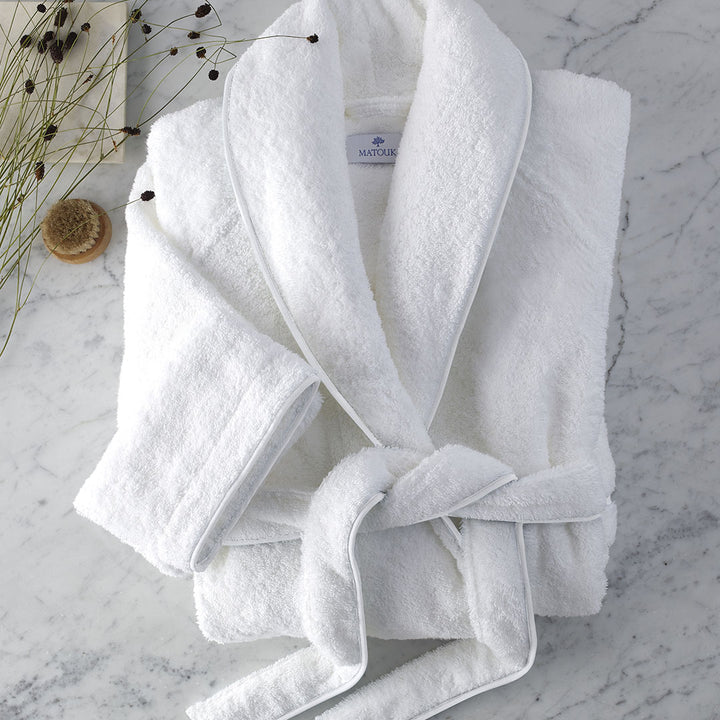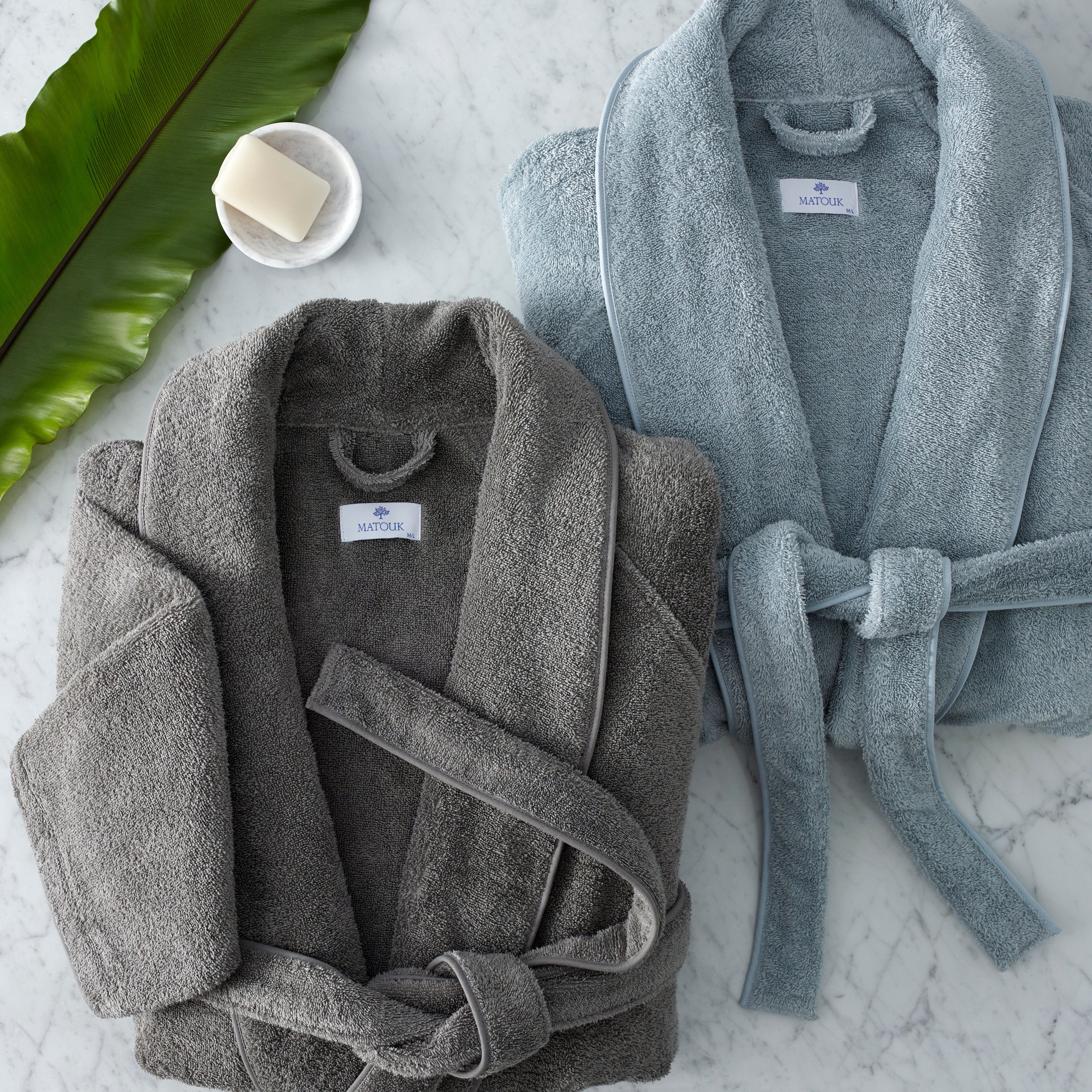 Indulge in the understated elegance of the Matouk Cairo Robe, meticulously crafted to offer unparalleled comfort and style. This luxurious bathrobe features a simple yet sophisticated design, making it an ideal addition to any master bath.