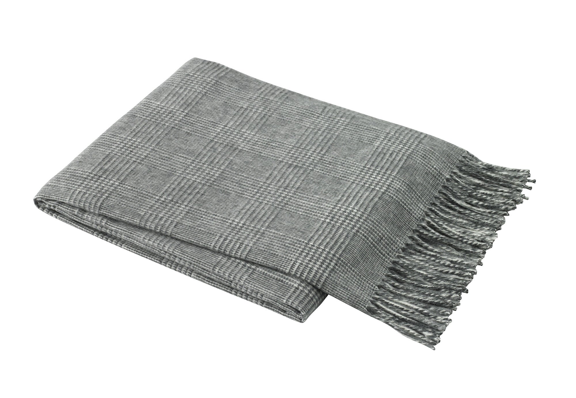 • Design: Subtle herringbone pattern with decorative white fringe
