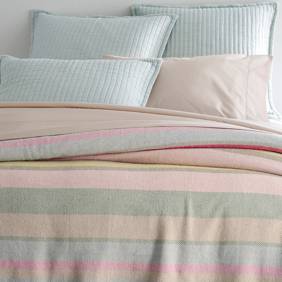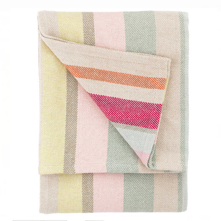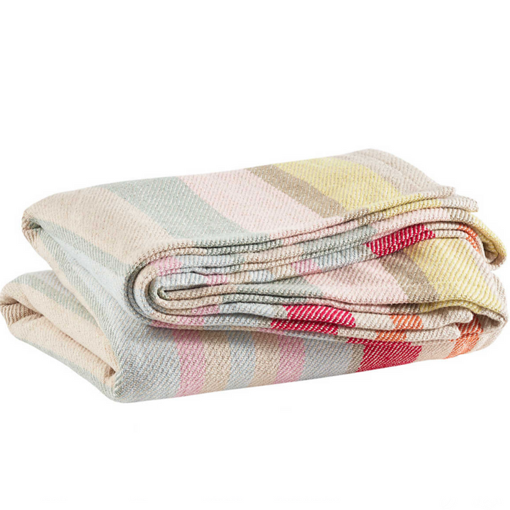 Perfect happiness awaits with this colorful twill weave cotton blanket. Ideal for snuggling up on the deck to watch the sunset, or as a top-of-bed blanket that pairs beautifully with our Suave bedding collection.