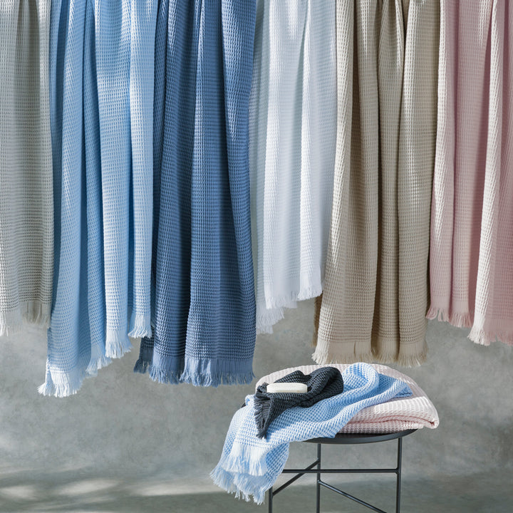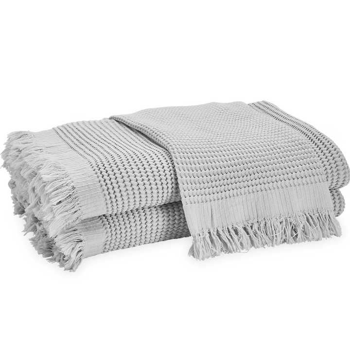 Indulge in the exquisite softness of Kiran, a beautifully woven waffle towel designed for luxurious comfort. Crafted from a premium blend of cotton and bamboo, its supple texture offers superior absorbency, while a delicate barred border with fringe adds an elegant finishing touch.