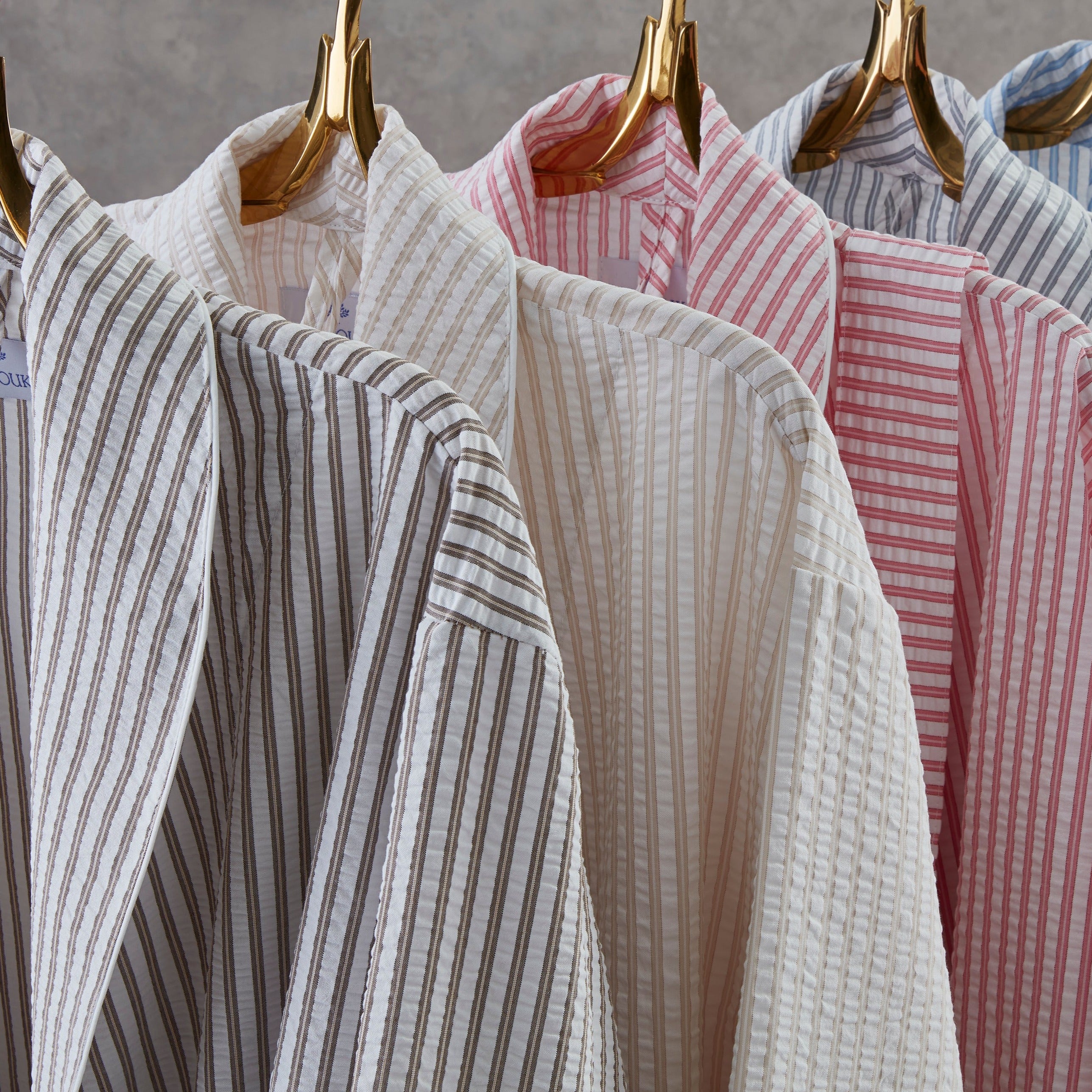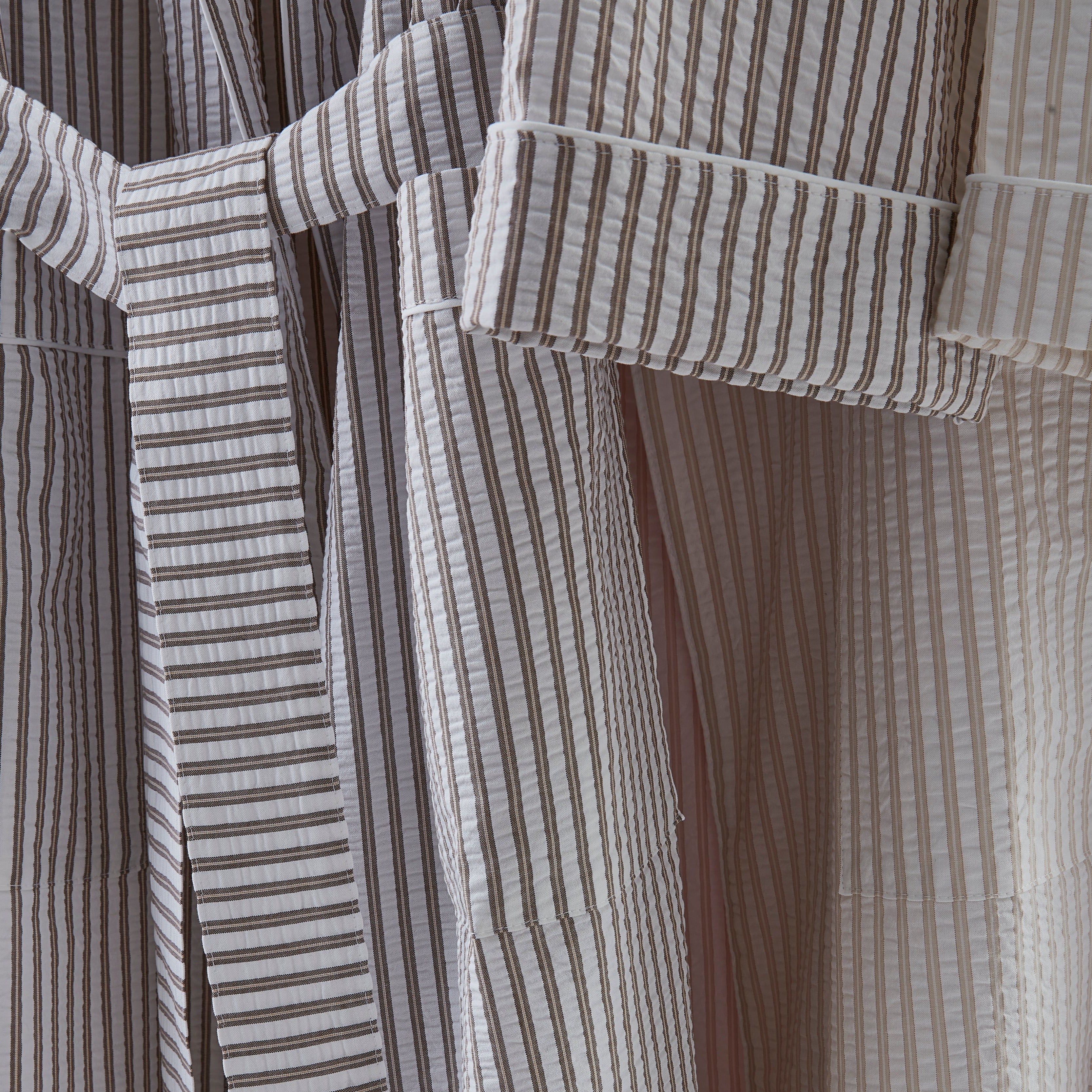 - Weave/Texture: Lightweight seersucker with a refined two-toned stripe