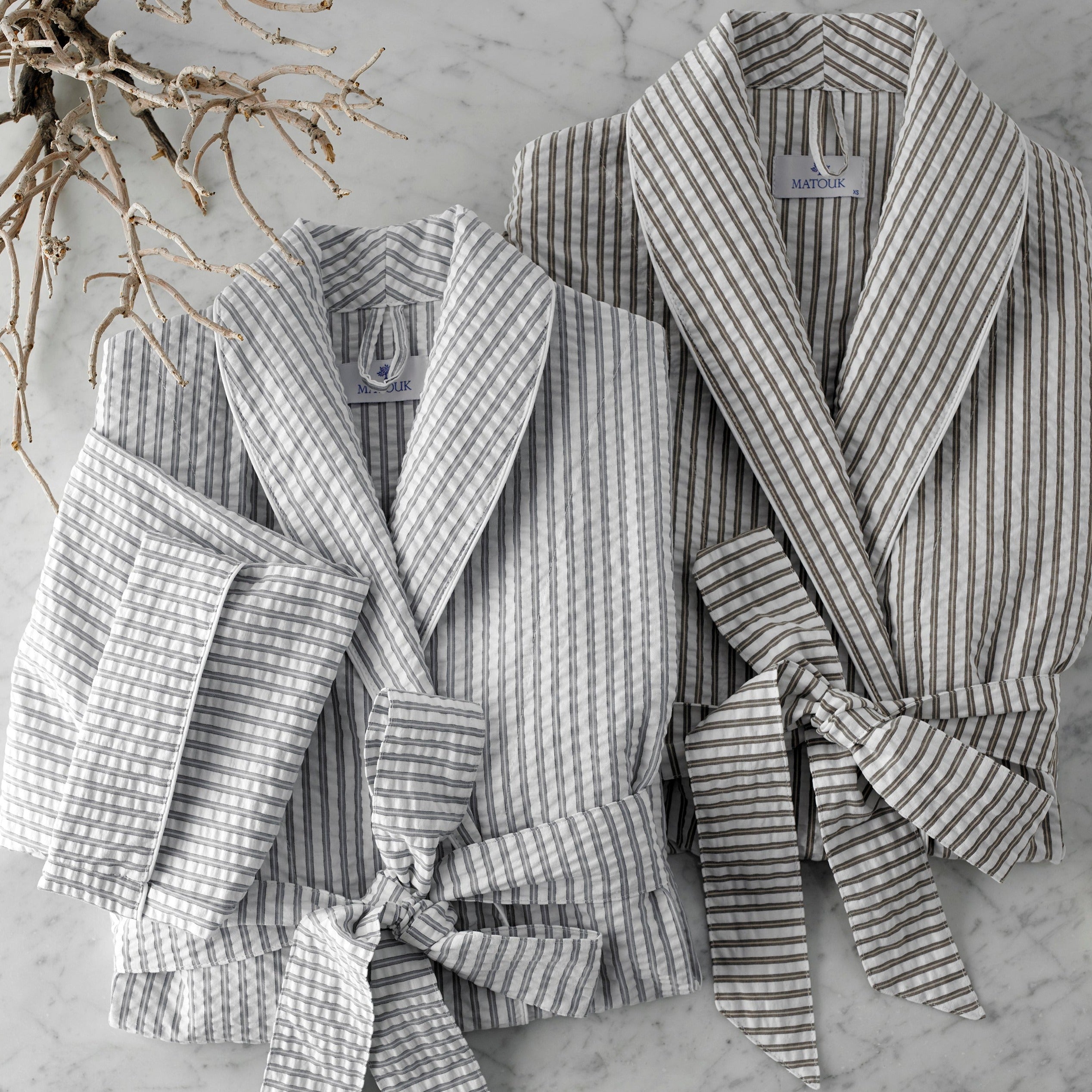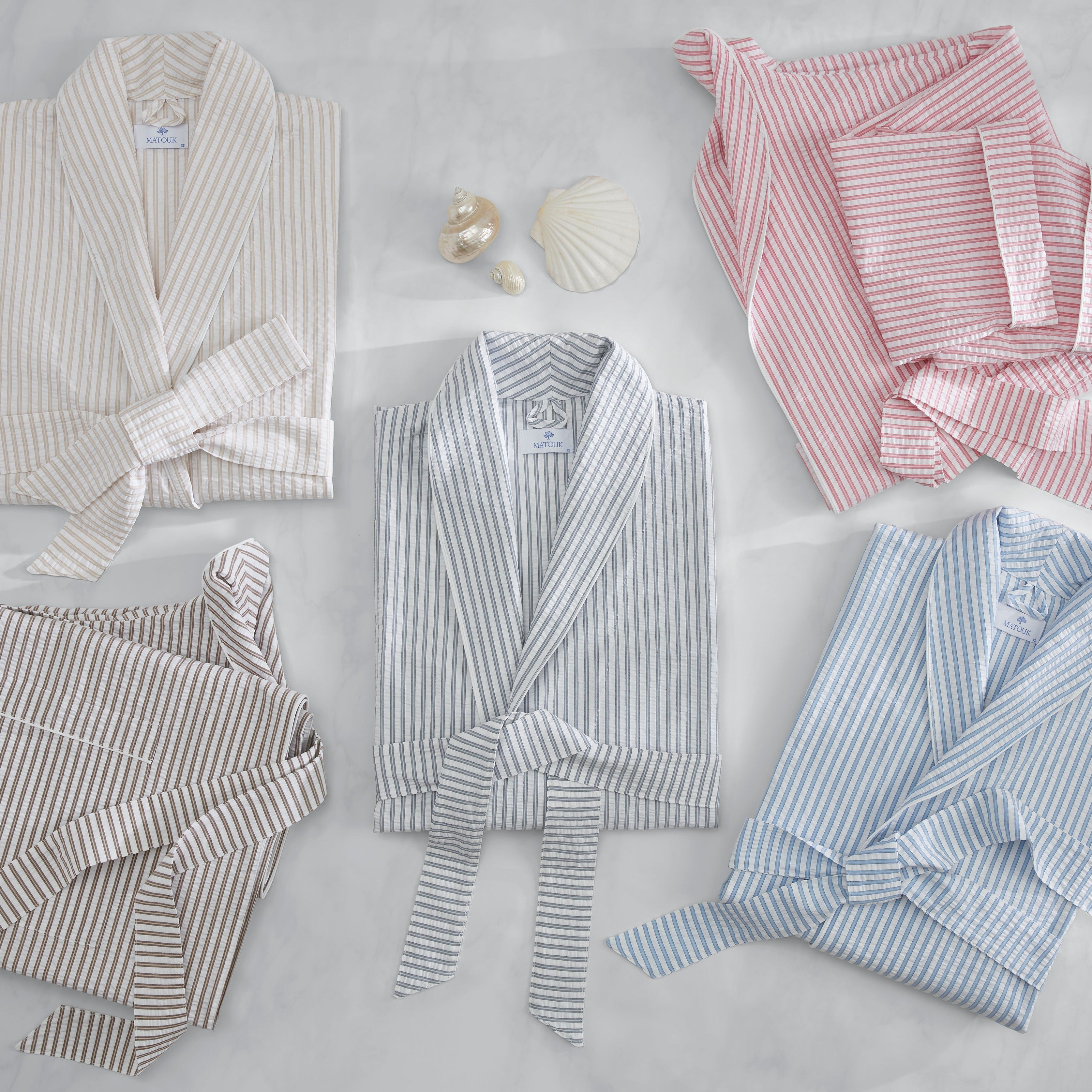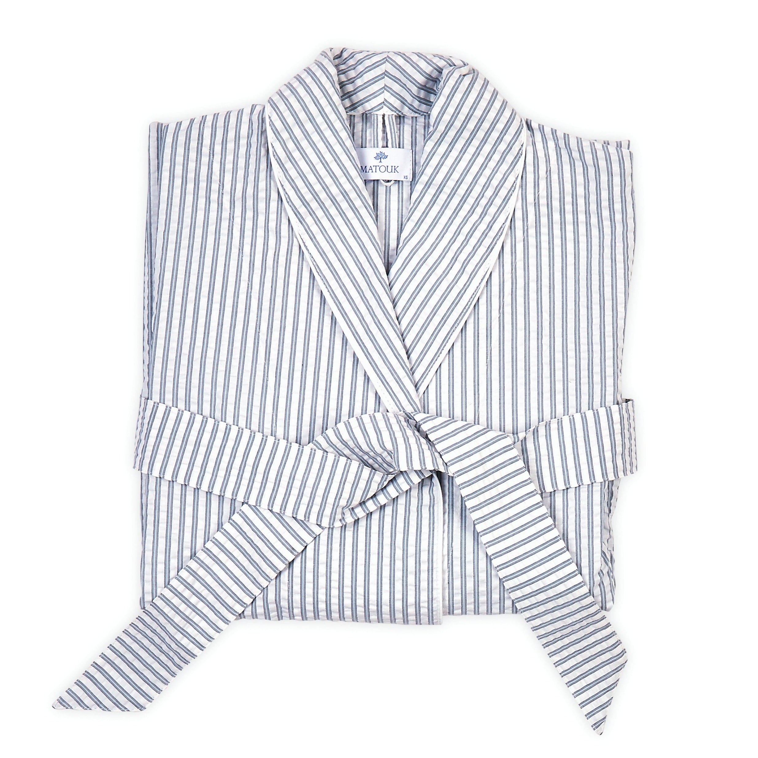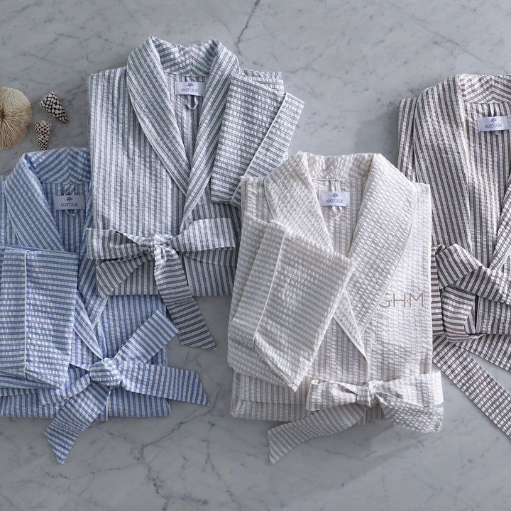 Indulge in effortless luxury with our Matteo Seersucker Robe. When the weather is warm, the best robe is lightweight, cool, and comfortable. The elegant Matteo robe is so much more—crafted from 100% cotton with a crisp seersucker weave, it adds a hint of sophistication with a two-toned stripe evocative of classic menswear.