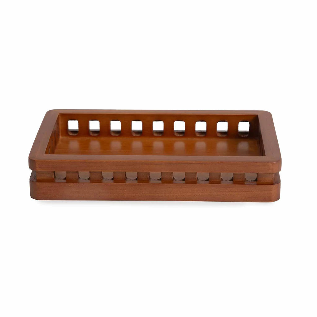 Create a tranquil oasis in your bathroom with the Osaka Bath Accessories. Featuring an elegant lattice frame design and crafted from durable rubber wood, each piece brings a sense of calm and natural beauty to your countertop while keeping your essentials neatly in place.