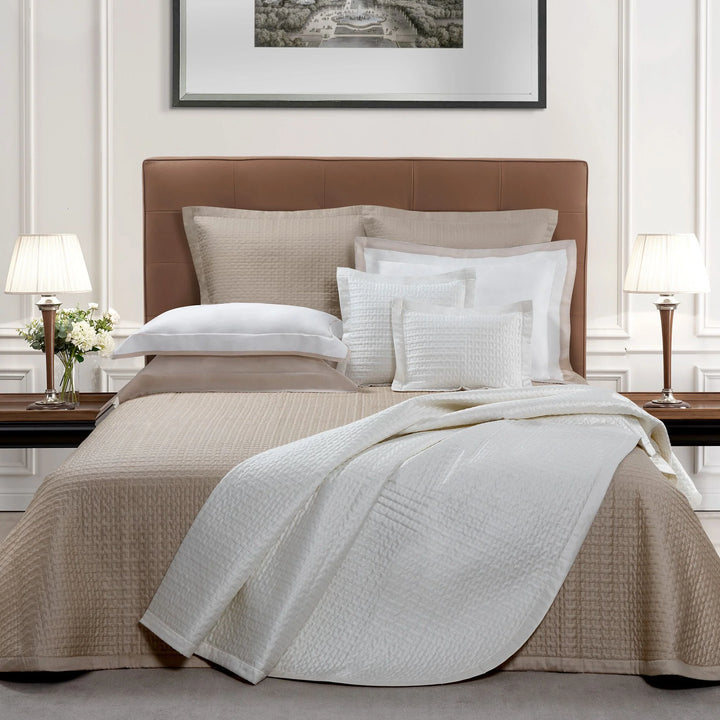 Crafted in Italy from 100% RASO cotton sateen, the Positano shams feature a silky finish and lightweight quilted texture—perfect for a polished, inviting bed all year round.