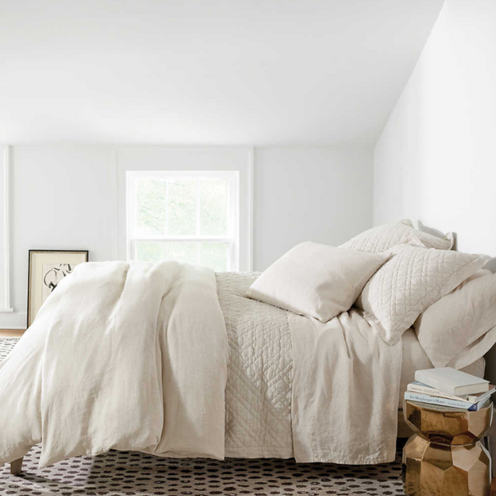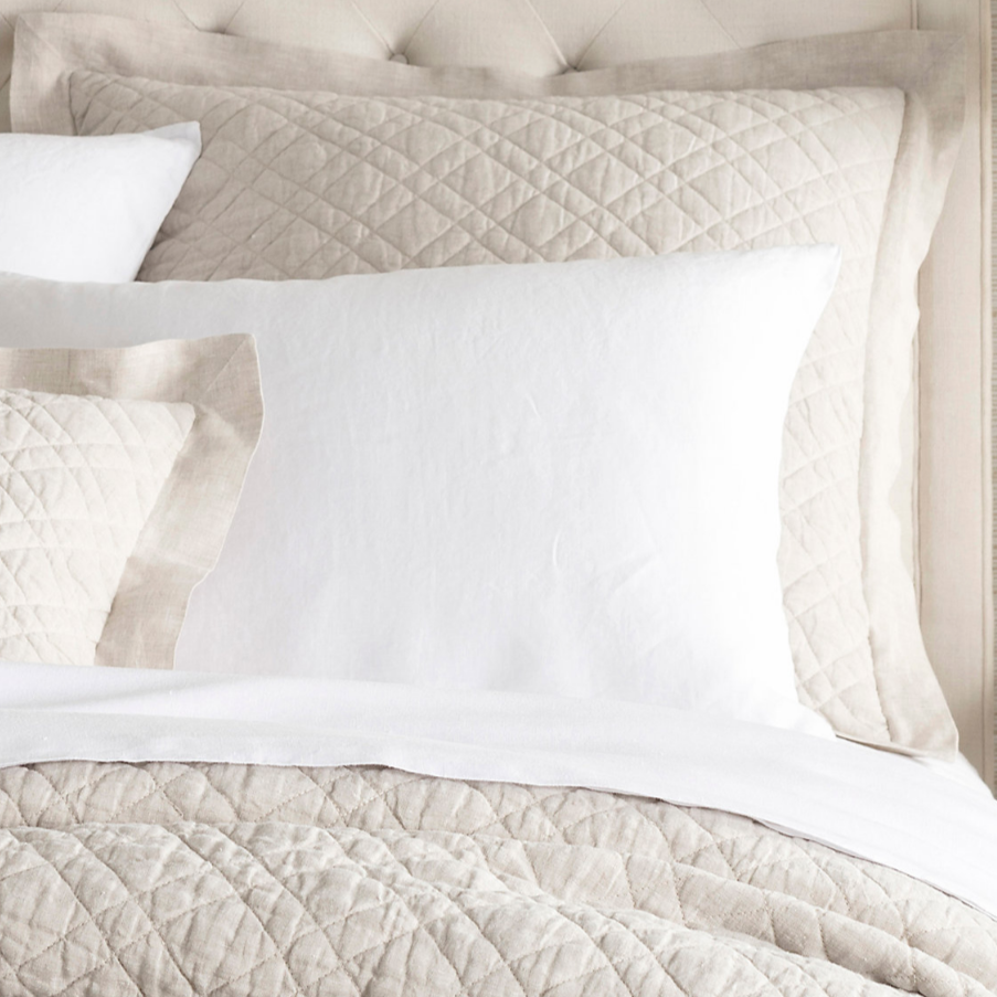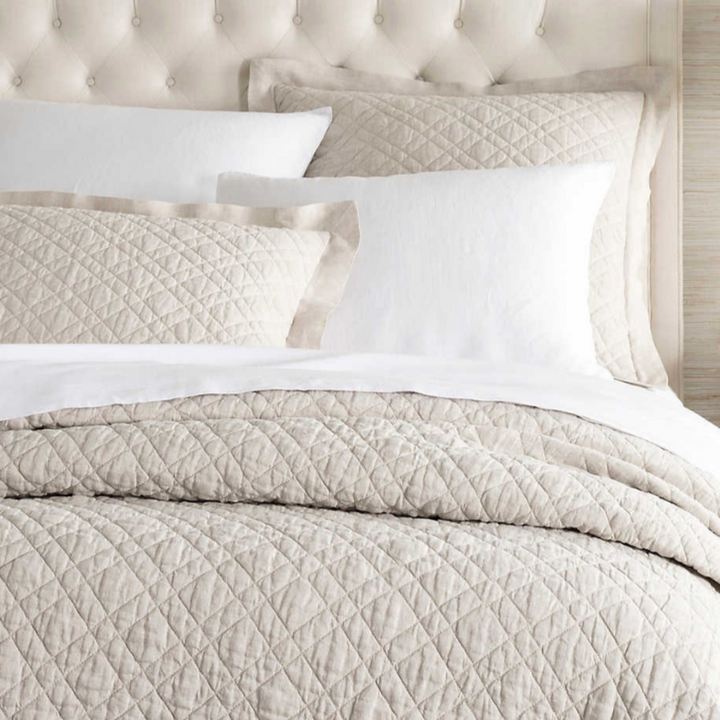 Capture linen's timeless appeal with this casually elegant take on the classic quilt. Featuring lush linen on the front, a thin layer of batting in between, and silky cotton percale on the back, this quilt blends softness, breathability, and comfort. Traditional diamond quilting adds texture and durability, while stonewashing ensures a relaxed, lived-in feel.
